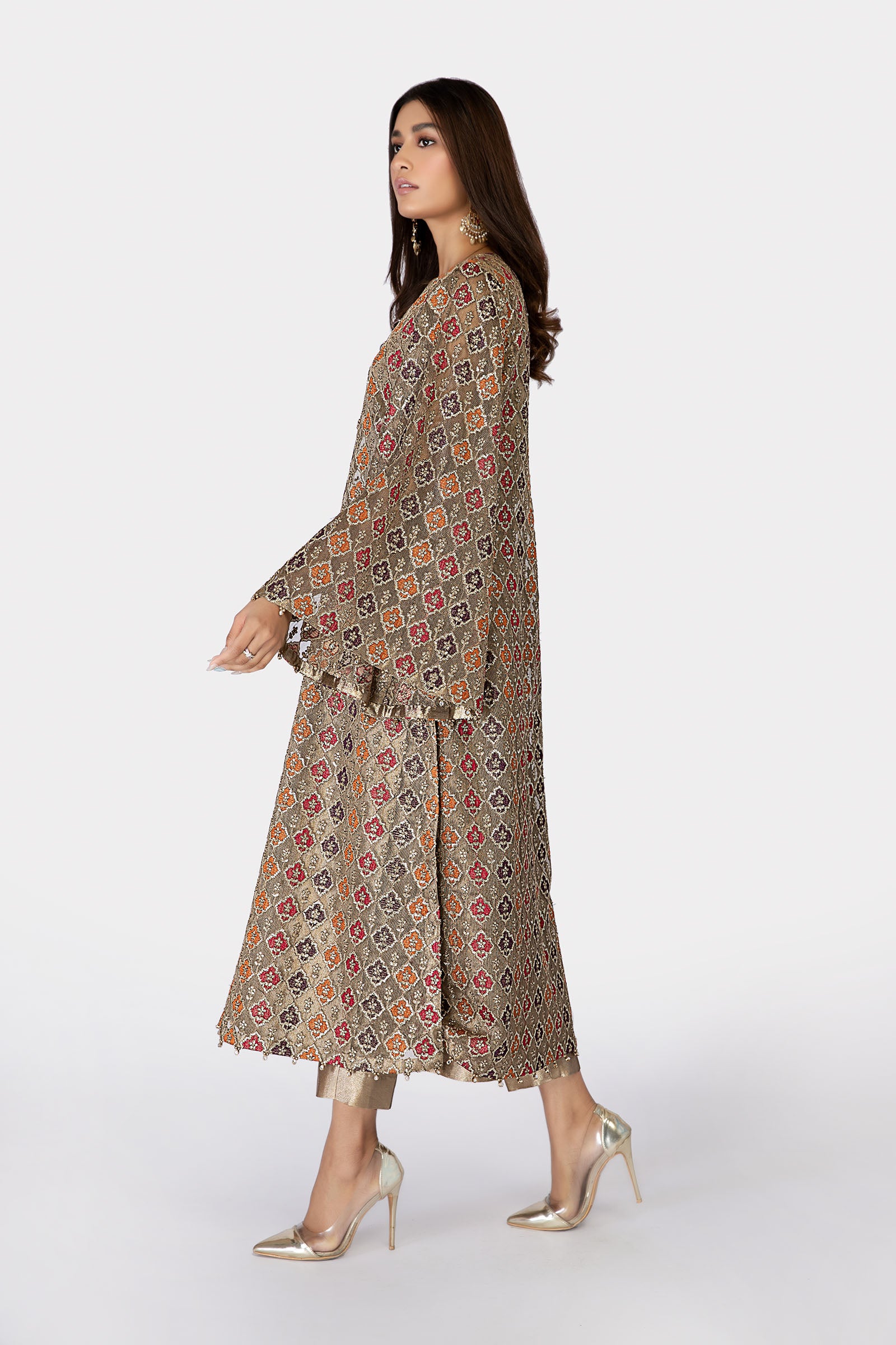ZARI NET FABRIC EMBELLISH WITH TILLA ,THREAD & SEQUINS EMBROIDERY