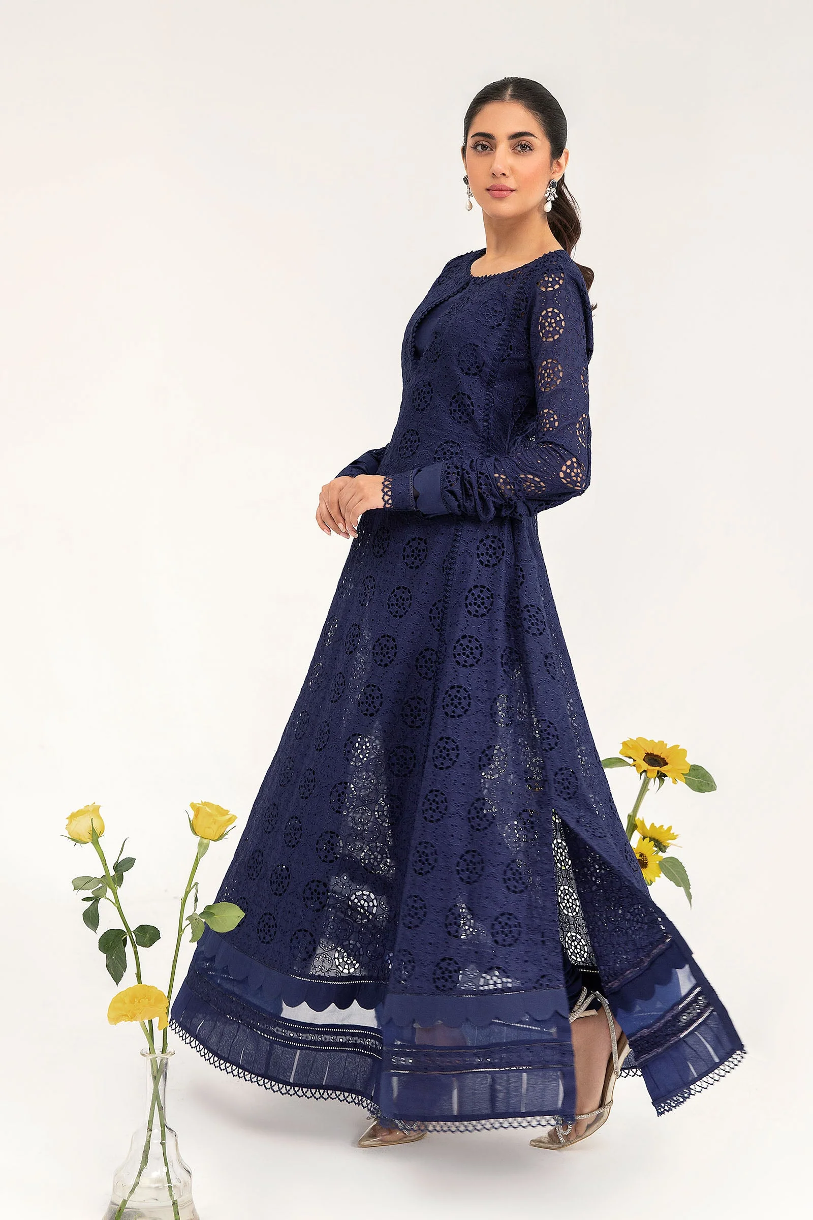 Pure lawn fabric with Schifli embroidery.