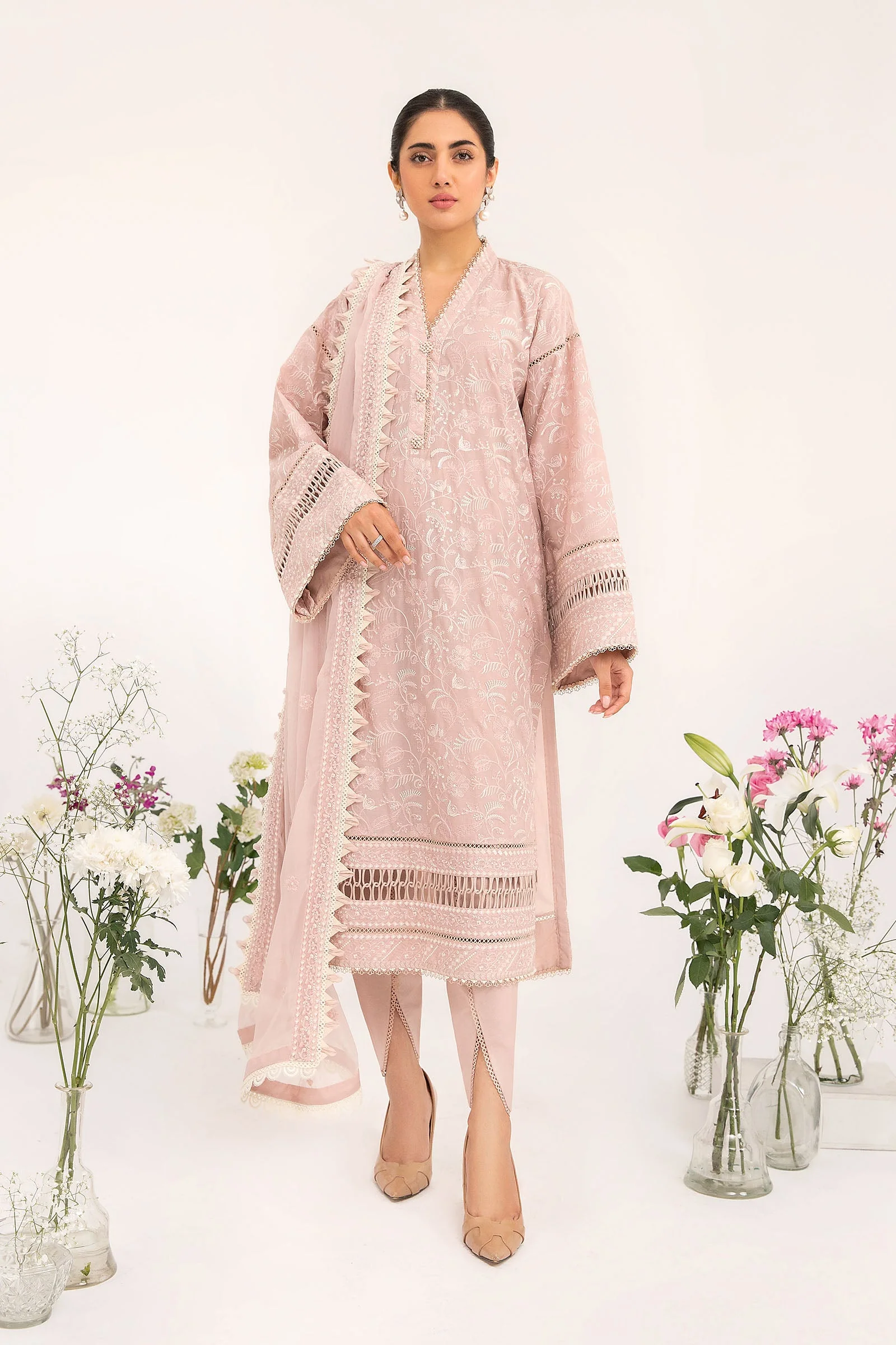 Pure lawn fabric embellished with thread and sequin embroidery.