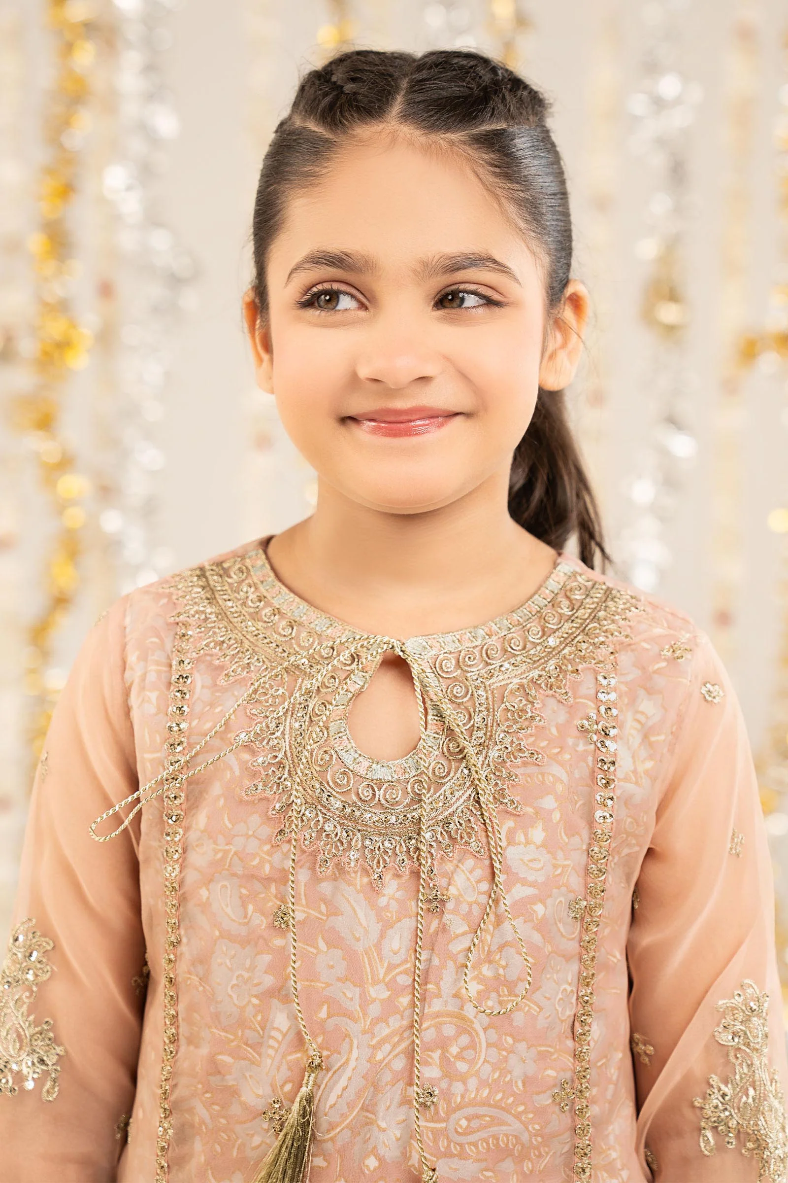 Embroidered long frock with block printed undershirt featuring tassels paired with tissue sharara